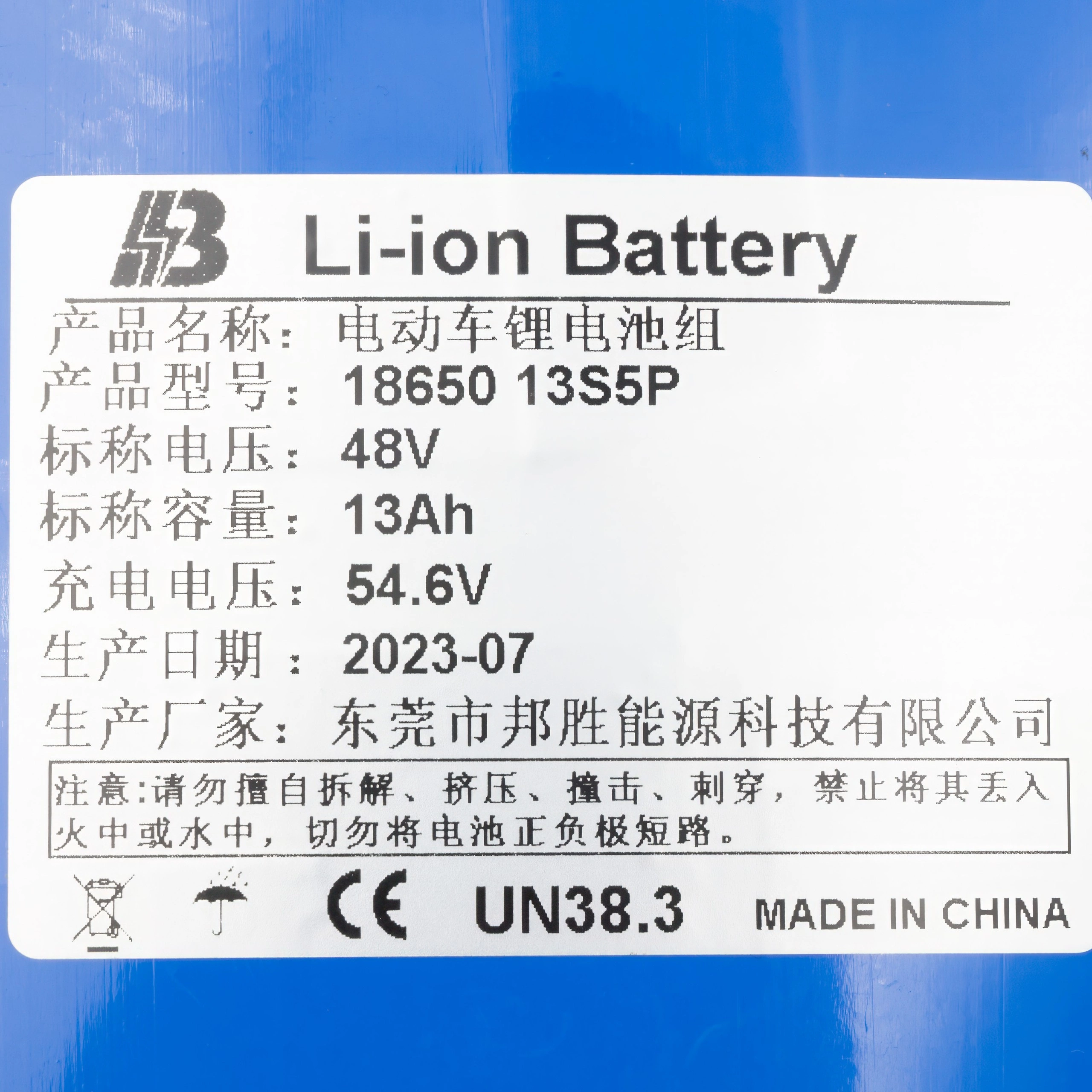 Akku 48V 13Ah Electric Sähköinen skootteri tai pyörä suorakulmainen