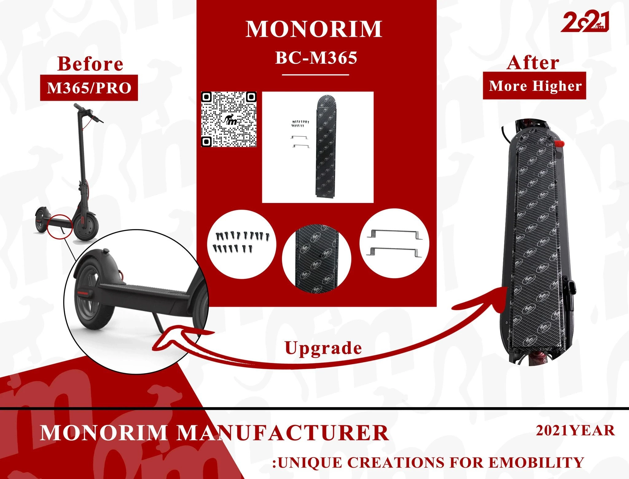 Monorim 48V akkukannen jatke on yhteensopiva Xiaomi M365, Xiaomi M187 Youth, Xiaomi Essential, Xiaomi 1S, Xiaomi Mi3, Xiaomi M365 Pro ja Xiaomi Pro 2 kanssa .