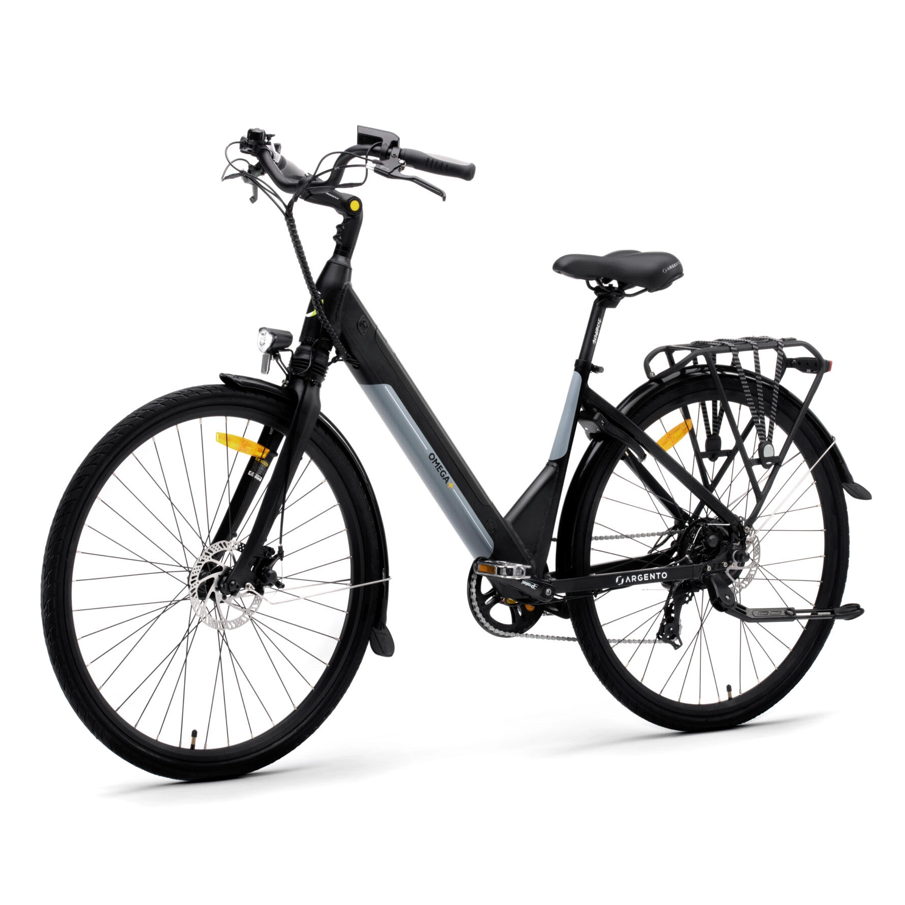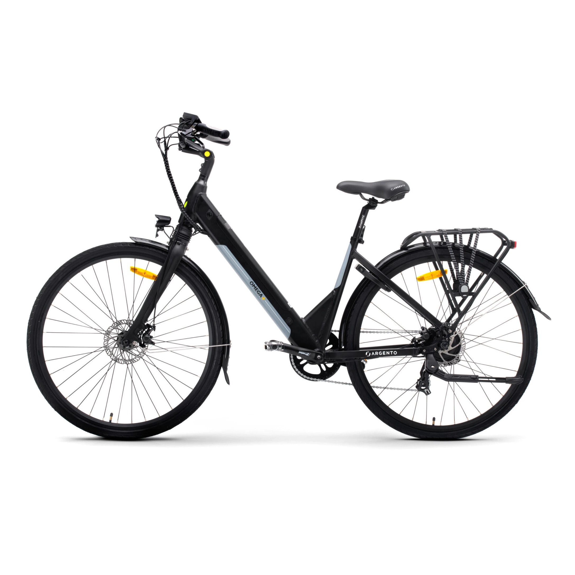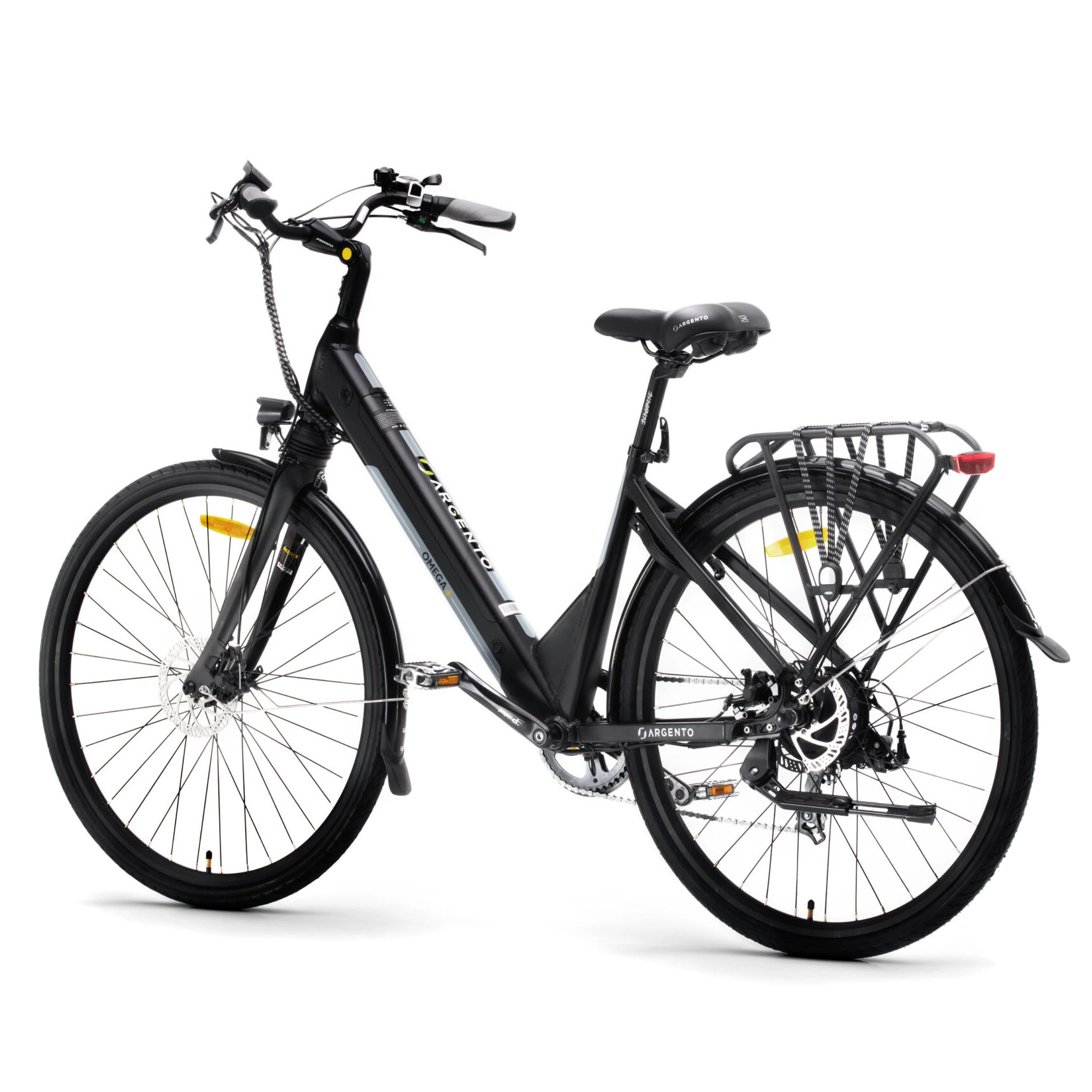 Turvallisuus on etusijalla Argento Omega -ähköpyörässä. Tektro-jarrujärjestelmä takaa välittömän pysähtymisvoiman, integroidut etu- ja takavalot parantavat näkyvyyttä hämärissä olosuhteissa ja leveät 28-tuumaiset Kenda-pyörät takaavat vakauden erilaisilla tienpinnoilla.
