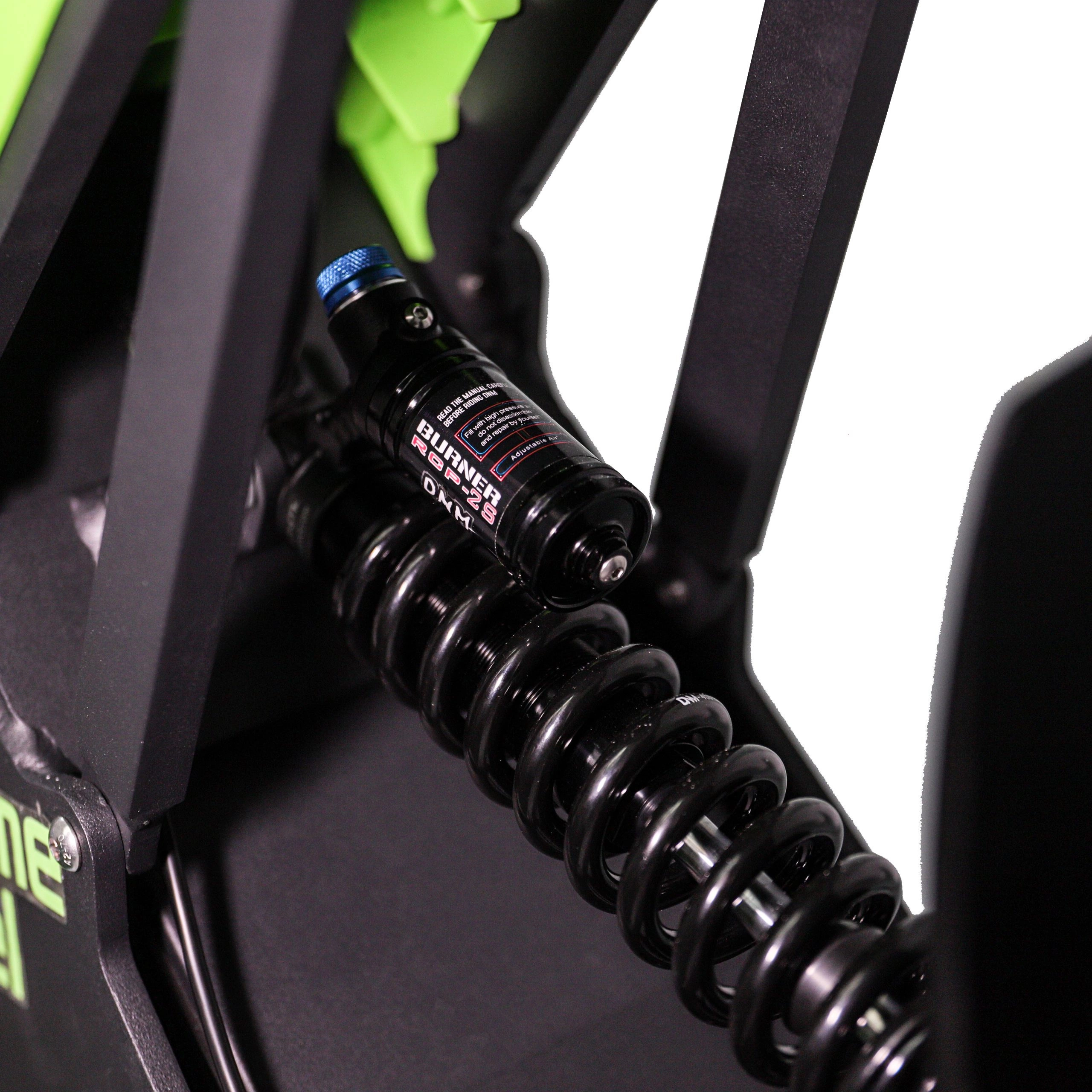 Kaksoiskruunullinen etuhaarukka, jossa on 203 mm:n (8 tuuman) ilmanpaineistettu matka, ja keskitystyyppinen paineilmajousitettu taka-iskunvaimennin tarjoavat jousitusjärjestelmän, joka vaimentaa iskuja ja tärähdyksiä. Tämä hienostunut jousitusjärjestelmä parantaa ajo-ominaisuuksia ja parantaa vetokykyä ja käsiteltävyyttä