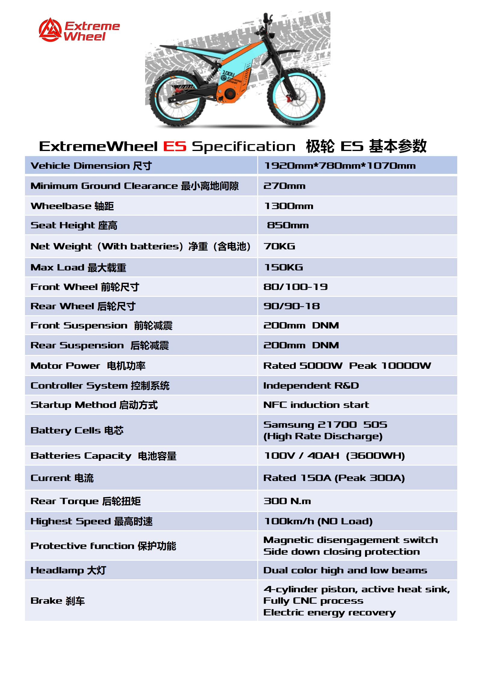 Pyörän 9 kW:n huipputehon ohjain hallitsee sähkömoottorin voimaa ja tarjoaa saumattoman tehonsiirron, joka takaa välittömän vasteen ja vaikuttavan väännön. Isot levyjarrut tarjoavat vahvan pysäytystehon, joka antaa sinulle itseluottamusta ylittää rajasi ja säilyttää samalla hallinnan. Begode Extreme Wheel ES -pyörässä on yhden napsautuksen kytkintoiminto, joka helpottaa siirtymistä eri ajotilojen ja tehoasetusten välillä ja mahdollistaa maastoon ja kuljettaja mieltymyksiin räätälöidyn ajamisen