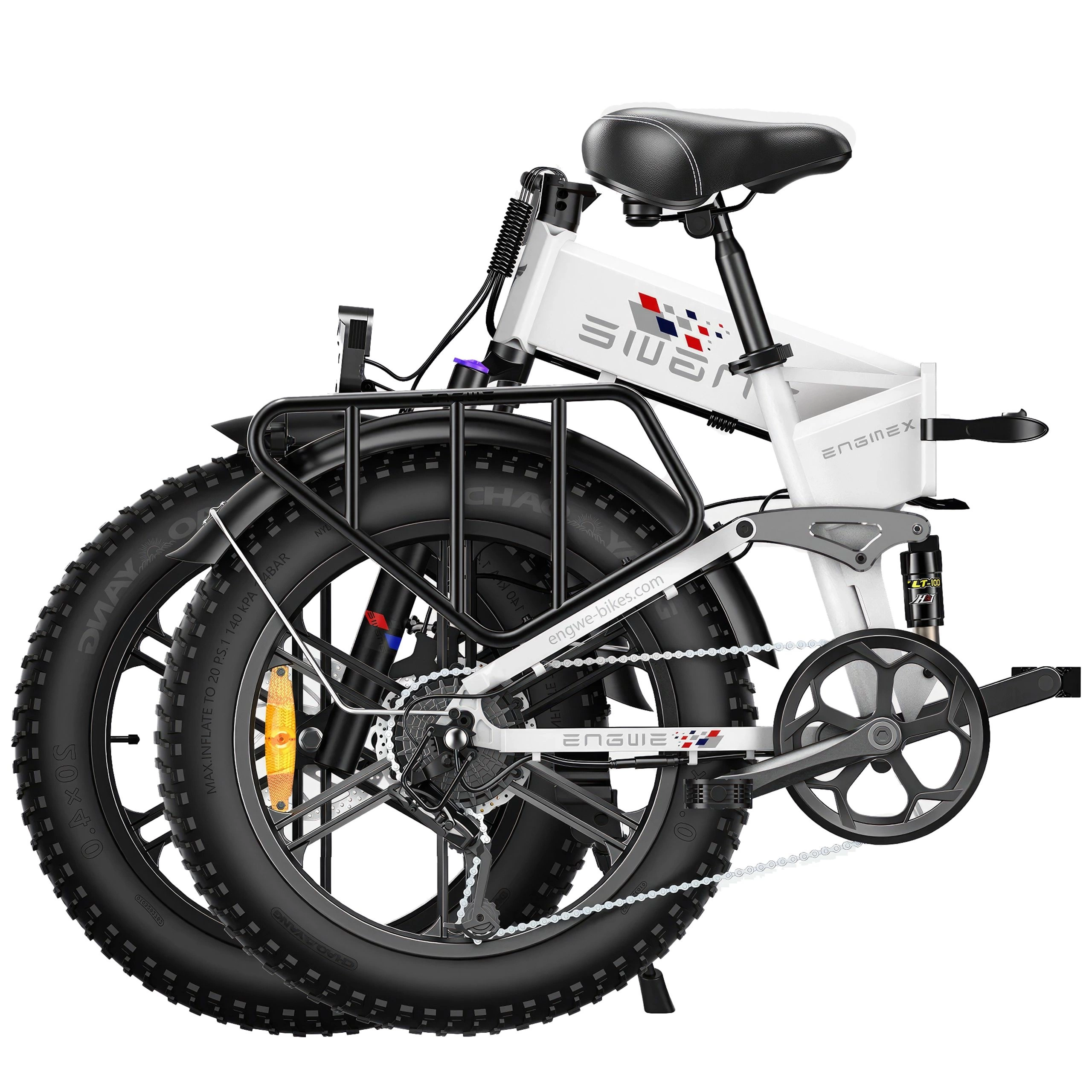 ENGWE Engine X:ssä on 3-vaiheisesti kokoontaitettava alumiiniseosrunko, joka on helppo säilyttää ja kuljettaa. Taitettuna pyörä on tarpeeksi kompakti mahtuakseen auton tavaratilaan tai pieneen säilytystilaan, ja se sopii täydellisesti työmatkoihin, matkoille ja säilytykseen kotona.