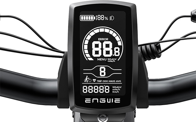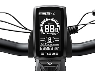 Pyörän nestekidenäytössä näkyvät reaaliaikaiset tiedot: nopeus, kuljettu matka ja akun varaustaso. Sen avulla voit myös valita ajotilan ja säätää tehotasoja. Tämän näytön avulla voit seurata ja hallita ajoasi.