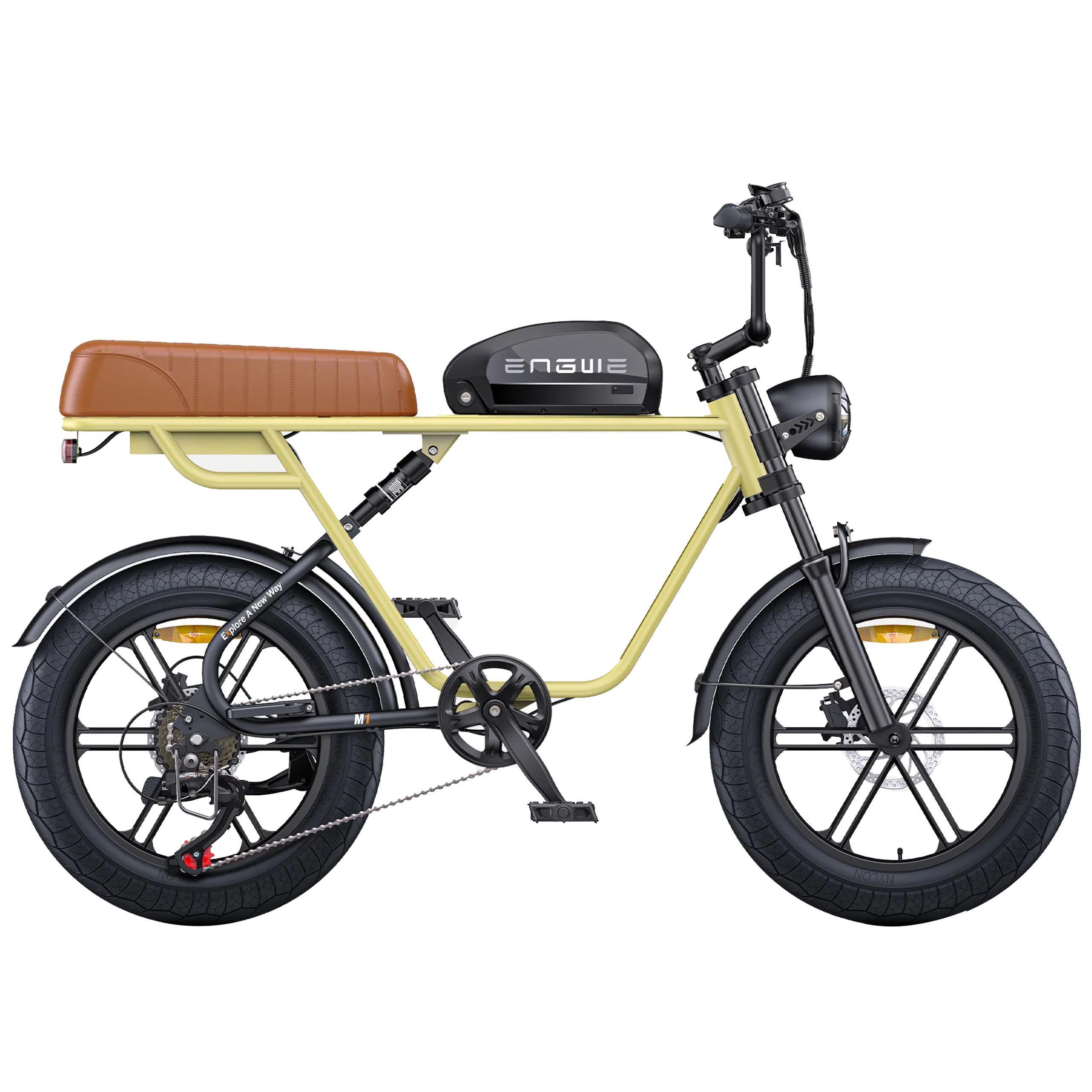 ENGWE M1 -sähköpyörässä yhdistyvät kompakti muotoilu ja vaikuttava toimintasäde. Tämä kahden matkustajan sähköpyörä pakkaa 250 W:n moottorin kaupunkielämää varten rakennettuun minirunkoon. Se tarjoaa vaikuttavan 105,5 mi (170 km) kantaman ja mukavat istuimet kahdelle. Se sopii täydellisesti niille, jotka haluavat jakaa matkansa tai tarvitsevat lisää kuormatilaa.