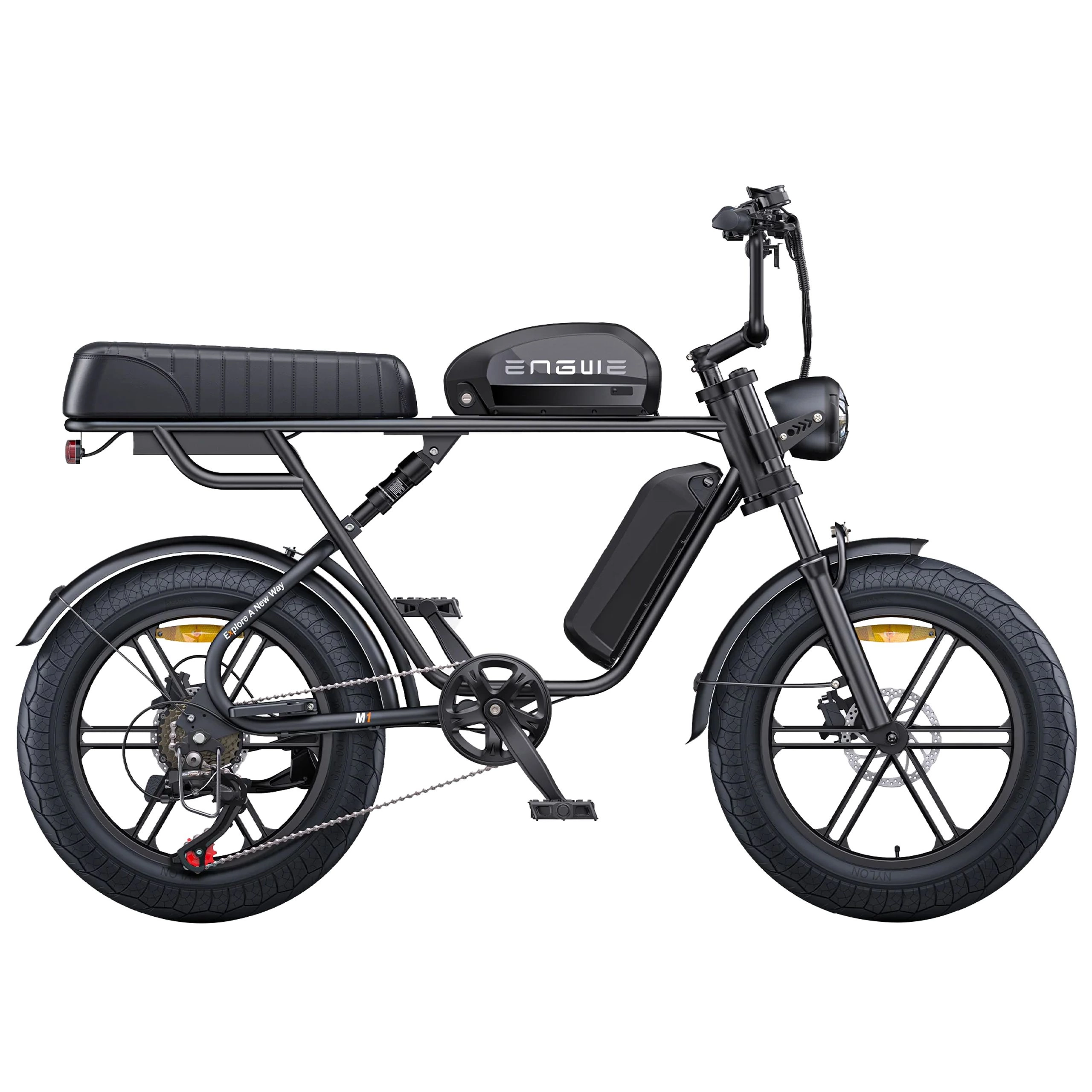 ENGWE M1 -sähköpyörässä yhdistyvät kompakti muotoilu ja vaikuttava toimintasäde. Tämä kahden matkustajan sähköpyörä pakkaa 250 W:n moottorin kaupunkielämää varten rakennettuun minirunkoon. Se tarjoaa vaikuttavan 105,5 mi (170 km) kantaman ja mukavat istuimet kahdelle. Se sopii täydellisesti niille, jotka haluavat jakaa matkansa tai tarvitsevat lisää kuormatilaa.