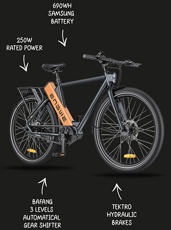 ENGWE P275 Pro sähköpyörä - 250W teho | 19.2Ah akku | 15.5mph nopeus | 162mi Range
