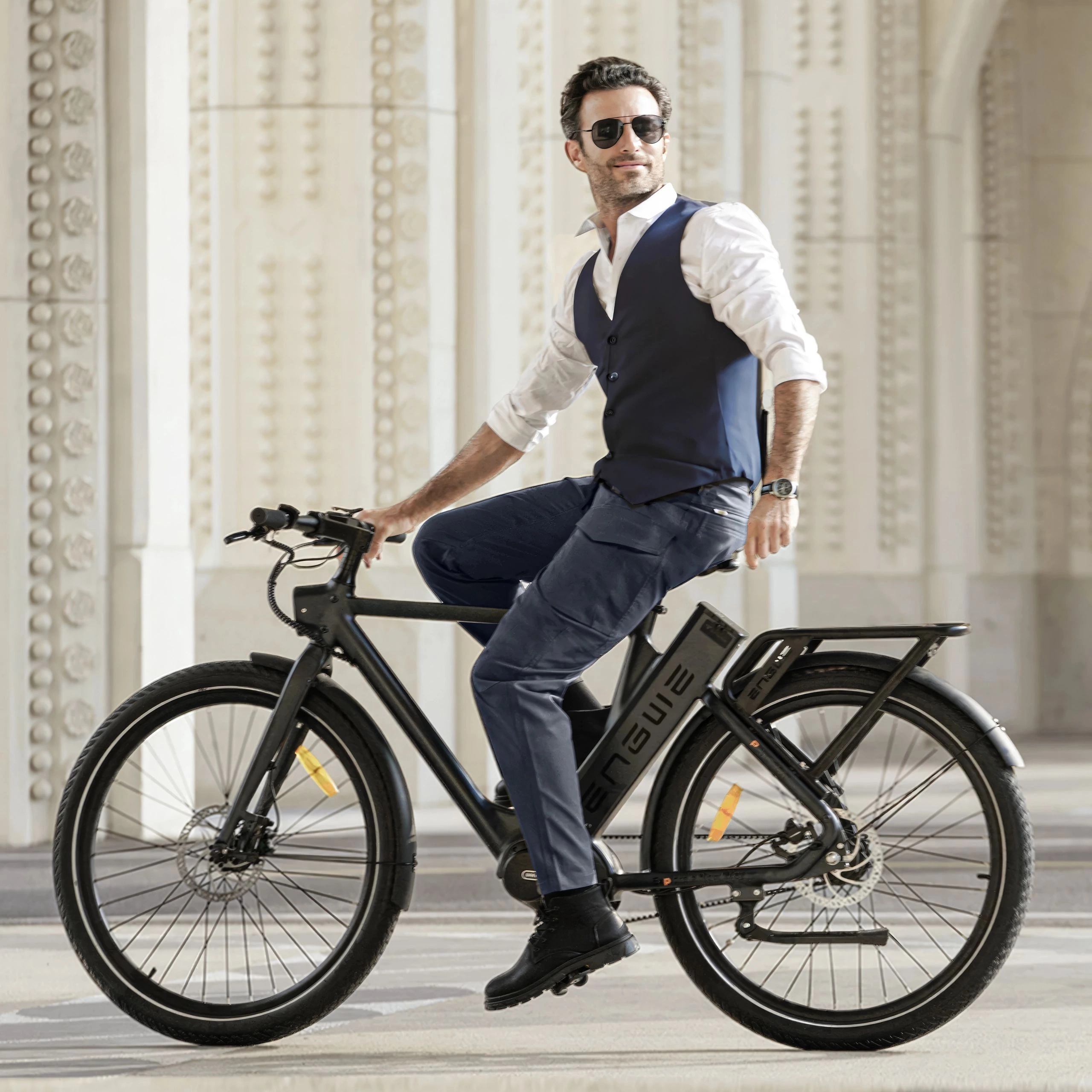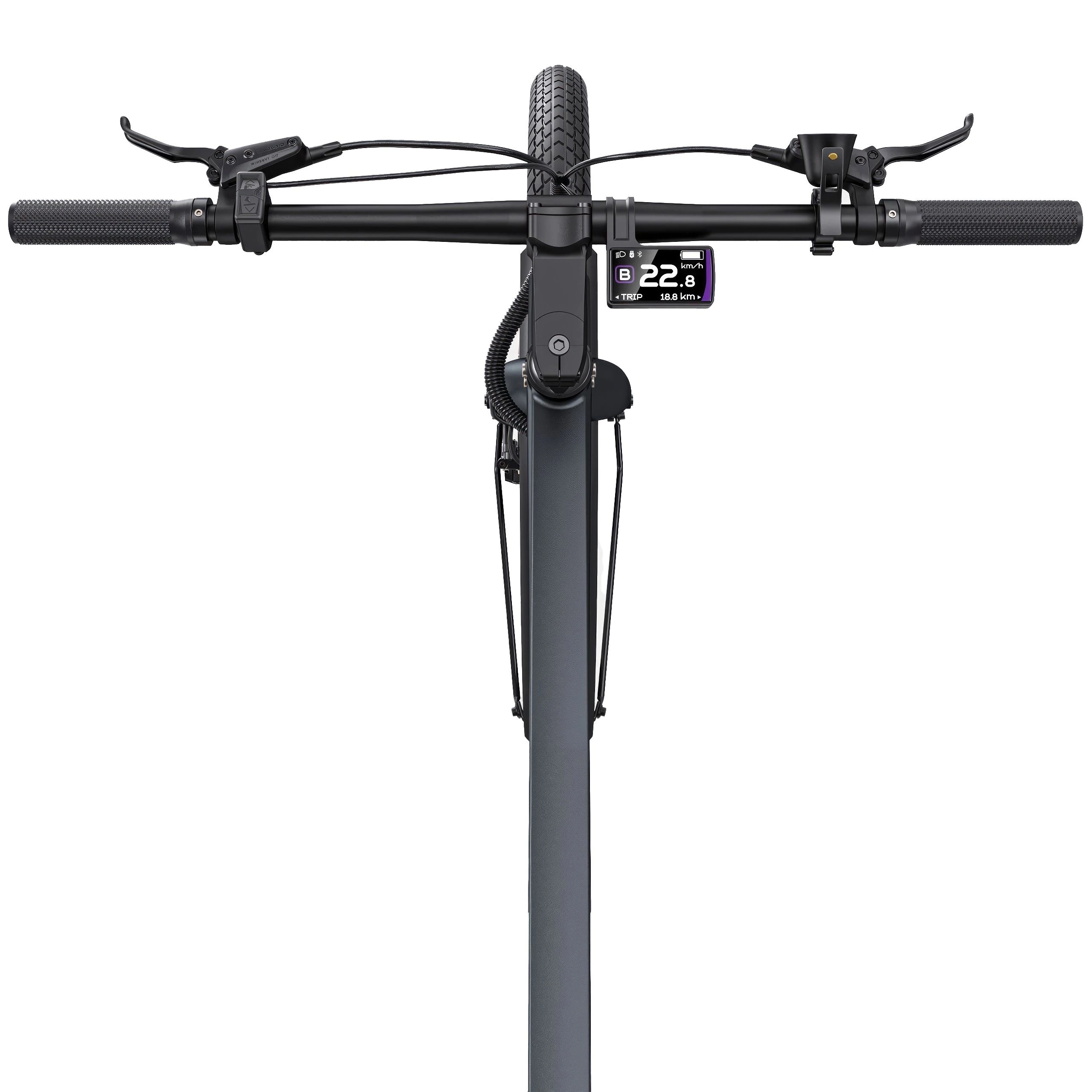 Pyörässä on säilytetty työmatkapyöräilijäystävälliset ominaisuudet: integroidut valot, tukeva takateline ja täydelliset suojalevyt. Se lisää kestävämpiä komponentteja, jotka takaavat kestävyyden maastossa. LCD-näyttö näyttää keskeiset ajotiedot ja säätää tehotasoja. Hydrauliset levyjarrut tarjoavat varman pysäytysvoiman kaikissa olosuhteissa.