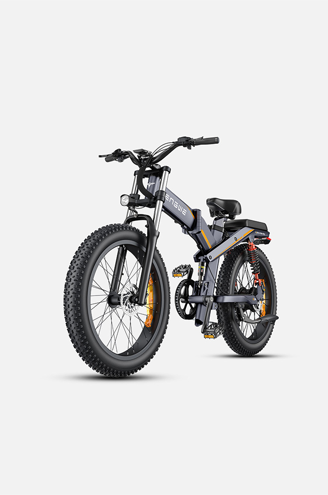 ENGWE X24 on kokoontaitettava sähköpyörä, joka on valmis valloittamaan minkä tahansa maaston. Tehokas 1000 W:n moottori, kaksi akkua, kaksoisjousitus ja paksut renkaat on suunniteltu työmatkoihin ja maastoseikkailuihin. Aja luottavaisin mielin hydraulisten levyjarrujen ja 8-vaihteisen Shimano-vaihteiston ansiosta .