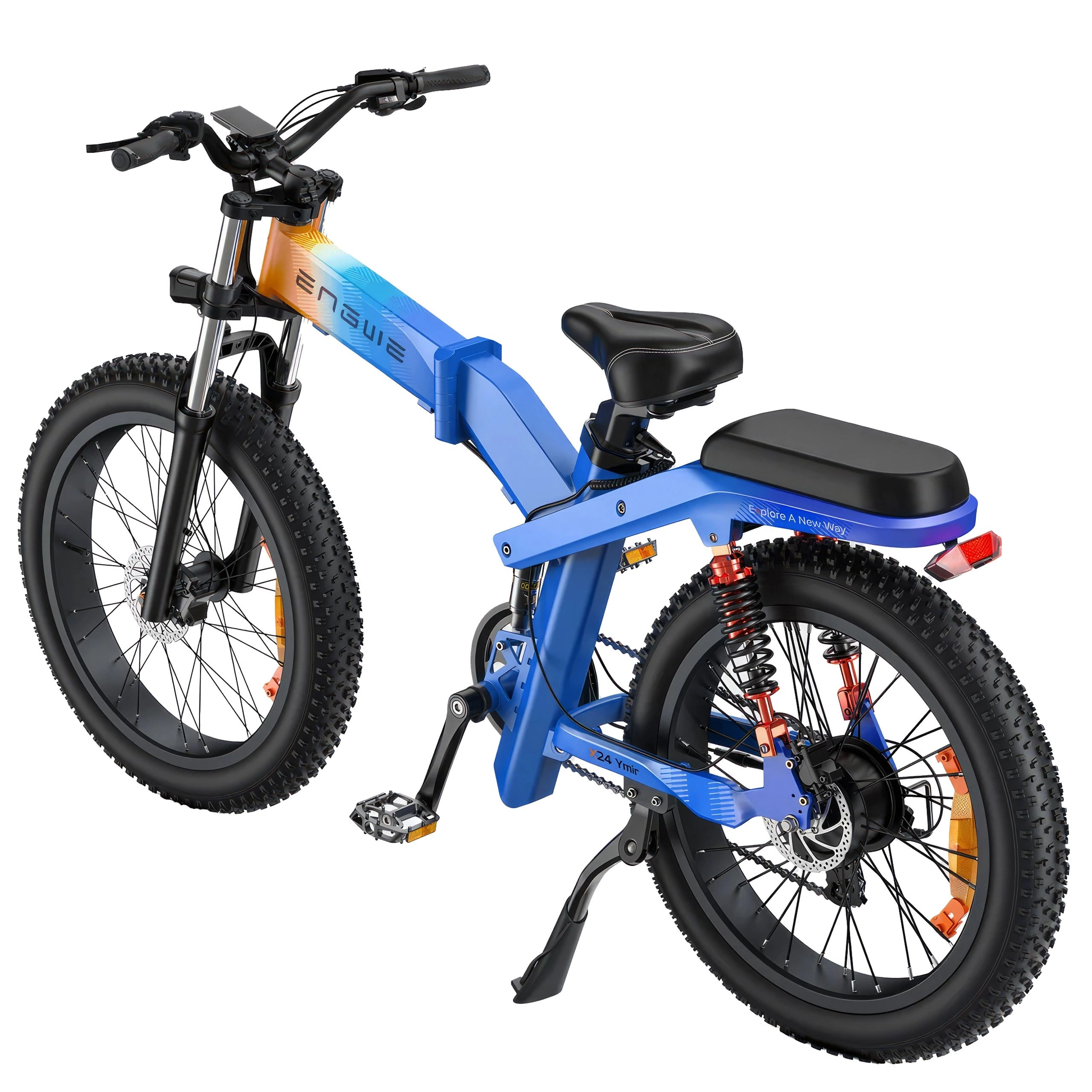 Hydraulisen etuhaarukan ja jousitetun takajousituksen ansiosta ENGWE X24 tarjoaa poikkeuksellisen hyvän iskunvaimennuksen. Tämä kaksoisjousitusjärjestelmä yhdistettynä 24" x 4,0" isoihin renkaisiin takaa tasaisen ja mukavan ajon soralla, lumella ja hiekalla ja tarjoaa varmuutta ja vakautta kaikilla pinnoilla.