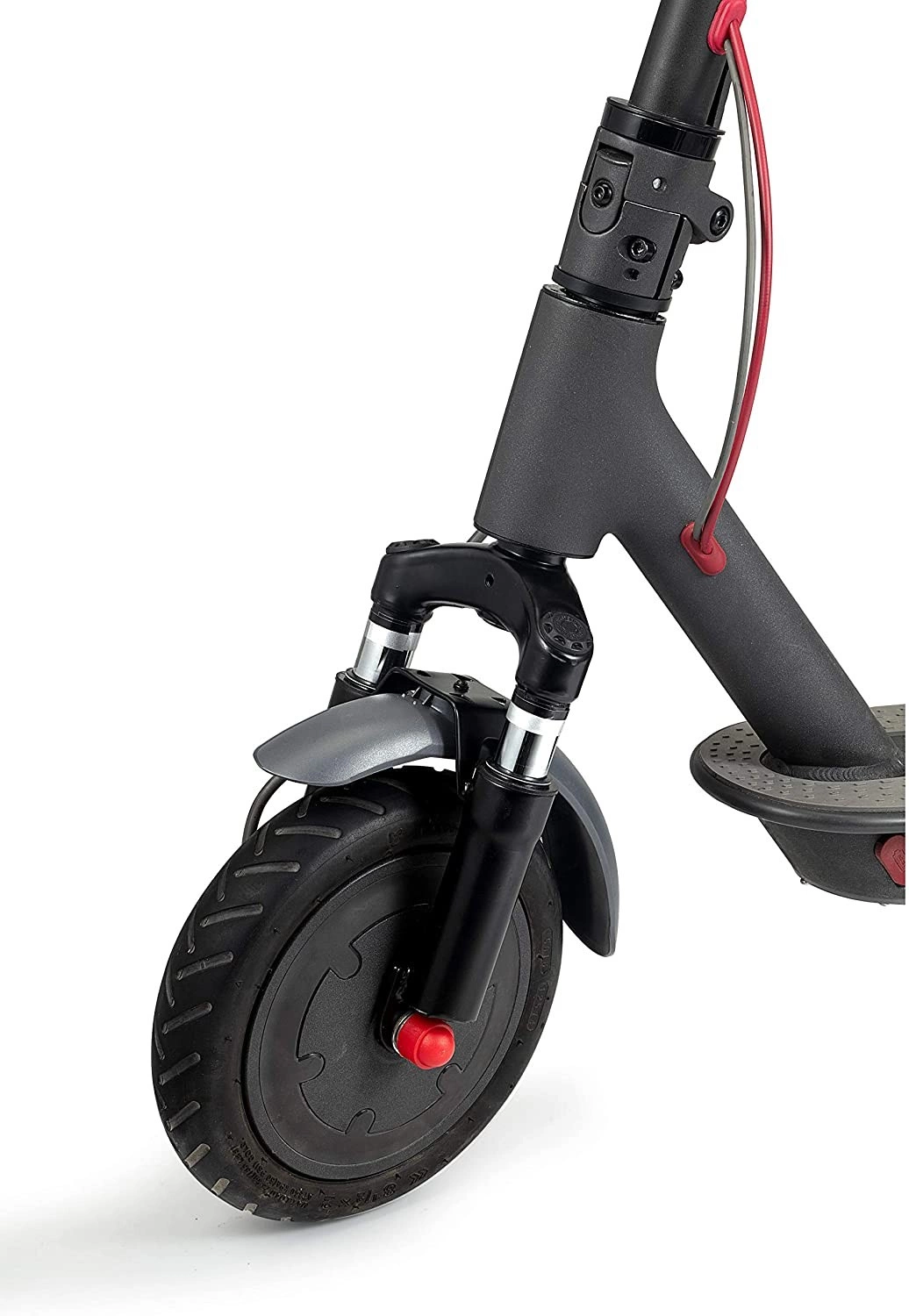 Vaimentamalla tien kuoppia etujousitus minimoi sähköinen skootteri ja kuljettaja kohdistuvat iskut, mikä lisää ajomukavuutta.