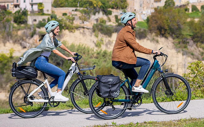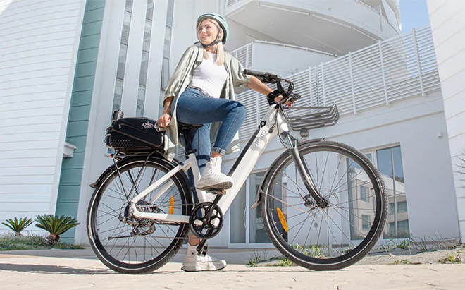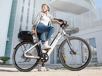 Step-through-runko, säädettävät komponentit ja mukana tuleva takateline tekevät tästä sähköpyörästä mukavan ja hyödyllisen jokapäiväisissä tehtävissä.