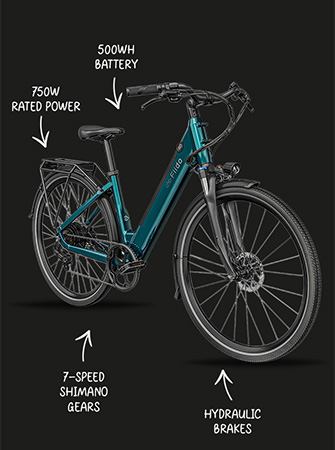 500 W:n moottori, jossa on 55 Nm:n vääntömomentti, selviytyy vaivattomasti mäistä ja vastatuulesta ja tarjoaa tasaisen kiihtyvyyden jopa 32 km/h (20 mph ) nopeuteen asti . Viiden poljinavustustilan avulla voit mukauttaa ajosi tehokkuuden tai tehon mukaan.