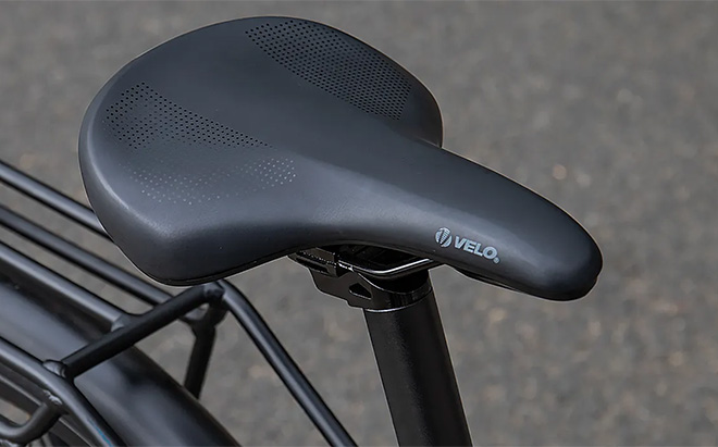 VELO-tyhjiön täysimittainen satula tukee istuinluutasi pidemmillä ajomatkoilla, ja säädettävä istuintolppa sopii käyttäjät 155-195 cm:n (5'1" - 6'5") pituisiin pyöräilijöihin.
