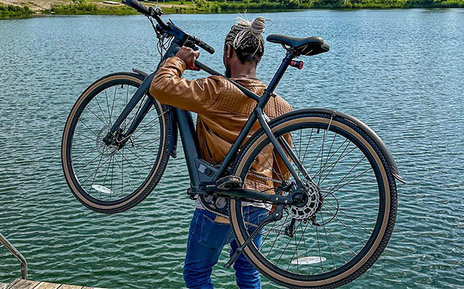 Fiido C21 pitää asiat yksinkertaisina mattamustalla rungolla, joka kätkee sisäänsä sähkövoiman. 700c-pyörät ja ruskettuneet renkaat antavat sille klassisen maantiepyörätyylin. Piilotetut kaapelit ja sisäänrakennettu akku pitävät kaiken siistinä, ja laadukkaat jarrut ja näyttö osoittavat, että pyörä on tosissaan.