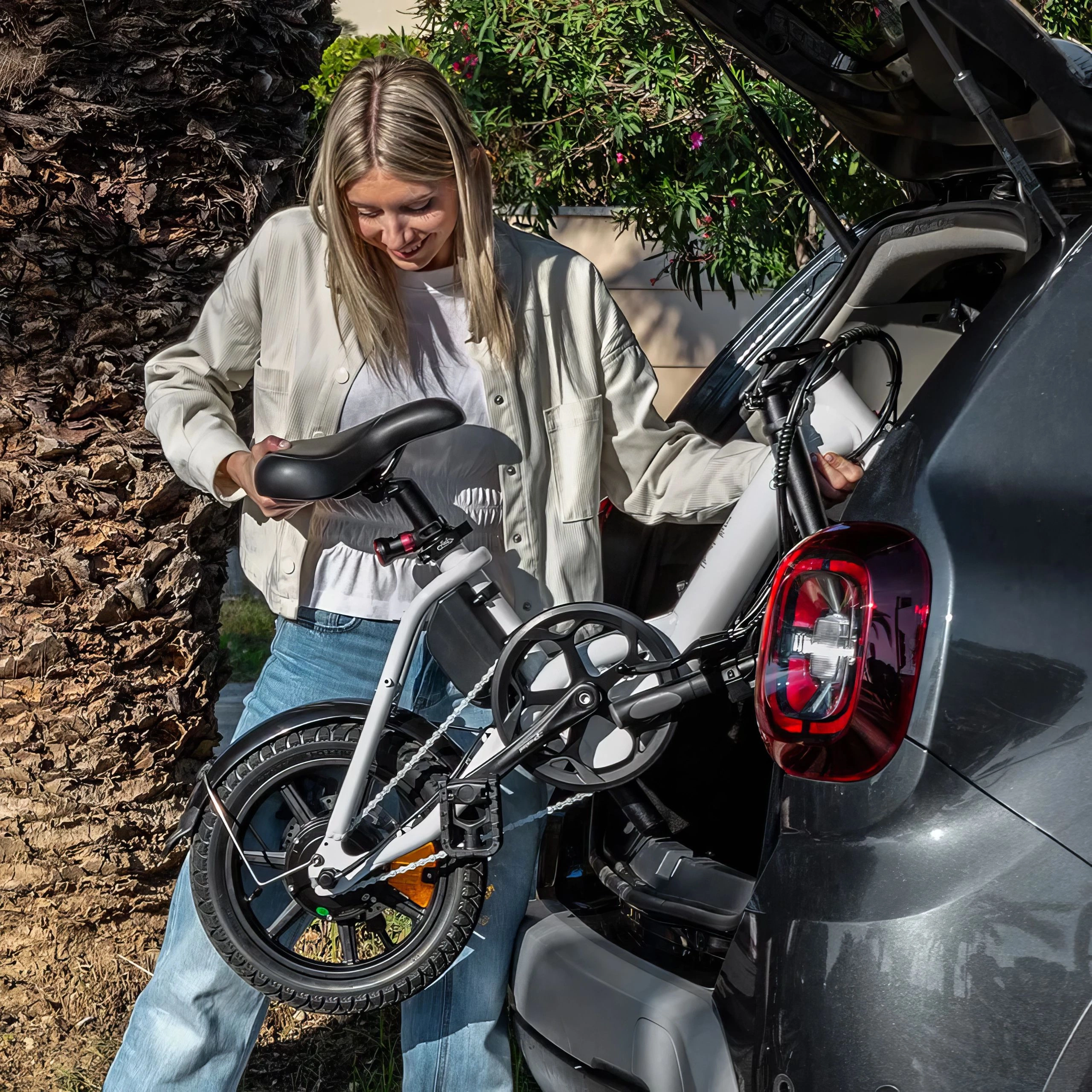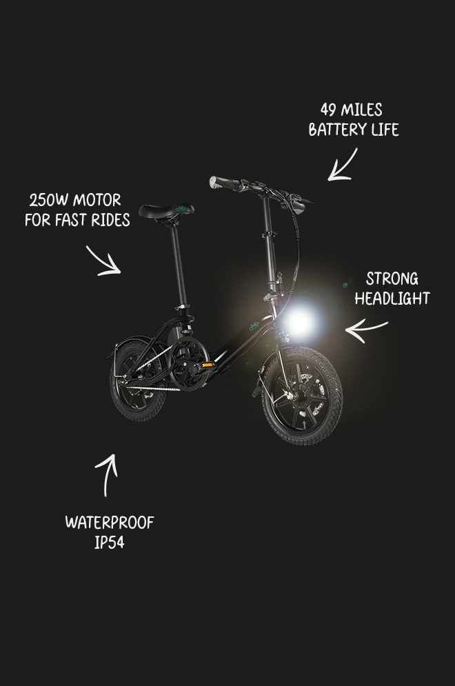 Fiido D3 Pron innovatiivisen taittomuotoilun ansiosta 14-tuumainen runko voidaan taittaa kokoon kompaktiksi, jolloin se on helppo säilyttää auton tavaratilassa, pöytien alla tai ahtaissa kaupunkitiloissa.