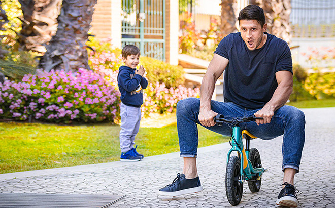 Voit istua Fiido K1:n kyydissä lapsesi rinnalla ja opastaa häntä hänen ensimmäisessä ratsastuskokemuksessaan. Sen vaikuttavan 80 kg:n (176,4 lbs) hyötykuormituskapasiteetin ansiosta aikuiset voivat mukavasti demonstroida oikeat ajotekniikat. Tämä yhteinen kokemus luo luonnollisia mahdollisuuksia opettamiseen. Se kasvattaa lapsesi itseluottamusta askel askeleelta.