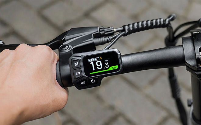 Pyörään on integroitu 1,47-tuumainen LCD-näyttö, joka yhdistyy älykelloihin ja tarjoaa olennaiset ajotiedot, sekä säänkestävä IP54-luokitus, askeltiheysanturi ja integroitu jarruvalo turvallisuuden ja näkyvyyden parantamiseksi.