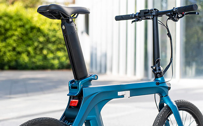 Fiido X Classic on väriltään silmiinpistävä tiansininen ja siinä on ainutlaatuinen M-muotoinen runko. Puhtaat linjat ja piilotetut saranat pitävät asiat siistinä, kun taas mustat osat, kuten istuin ja ohjaustanko, luovat täydellisen kontrastin. 20-tuumaiset pyörät ja laadukkaat jarrut viimeistelevät sen modernin ilmeen ja osoittavat, miksi se voitti muotoilupalkinnon.