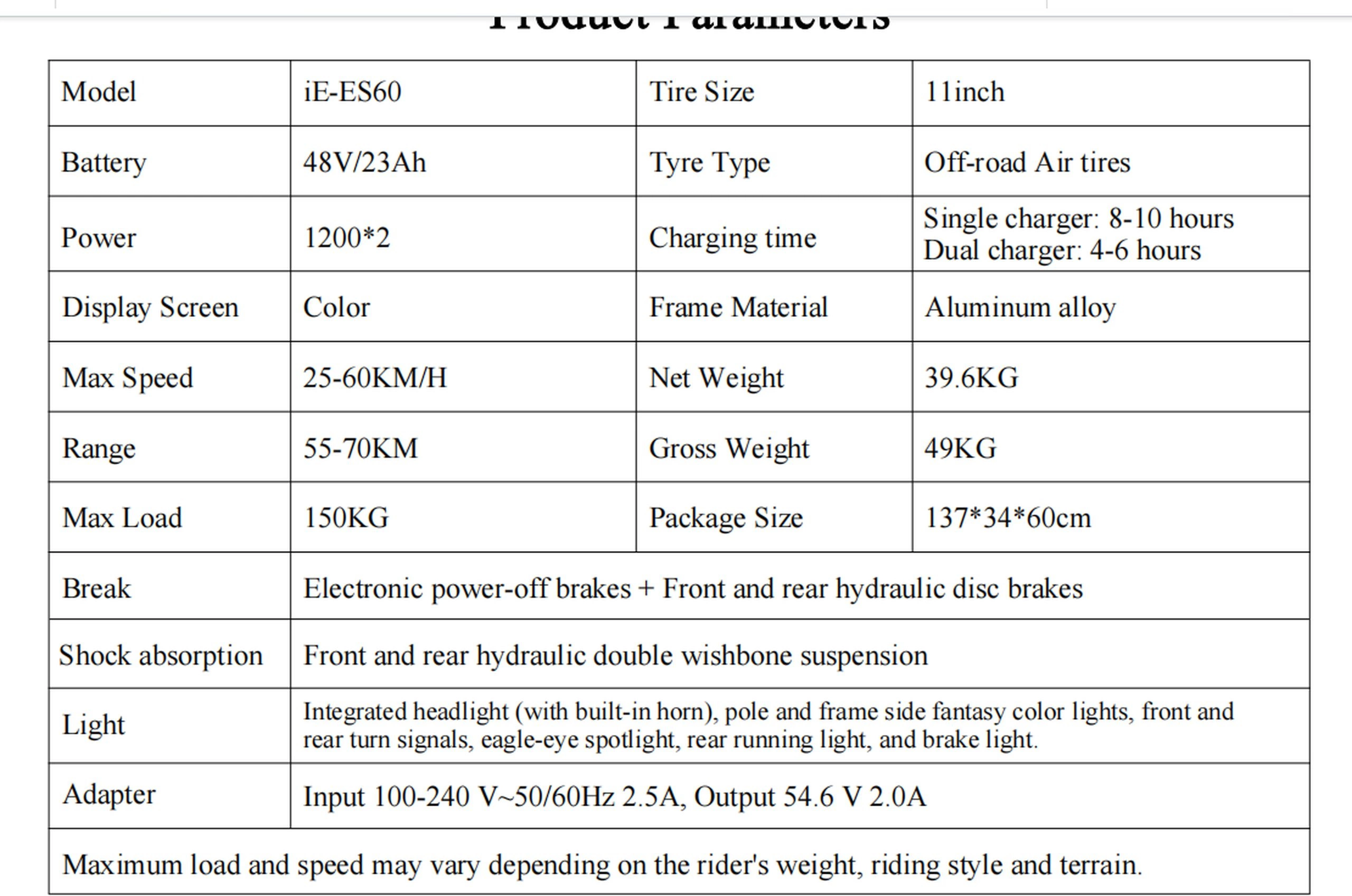 iENYRID ES60 Electric Sähköinen skootteri - 2400W teho | 23Ah akku | 37mph nopeus | 46mi alue