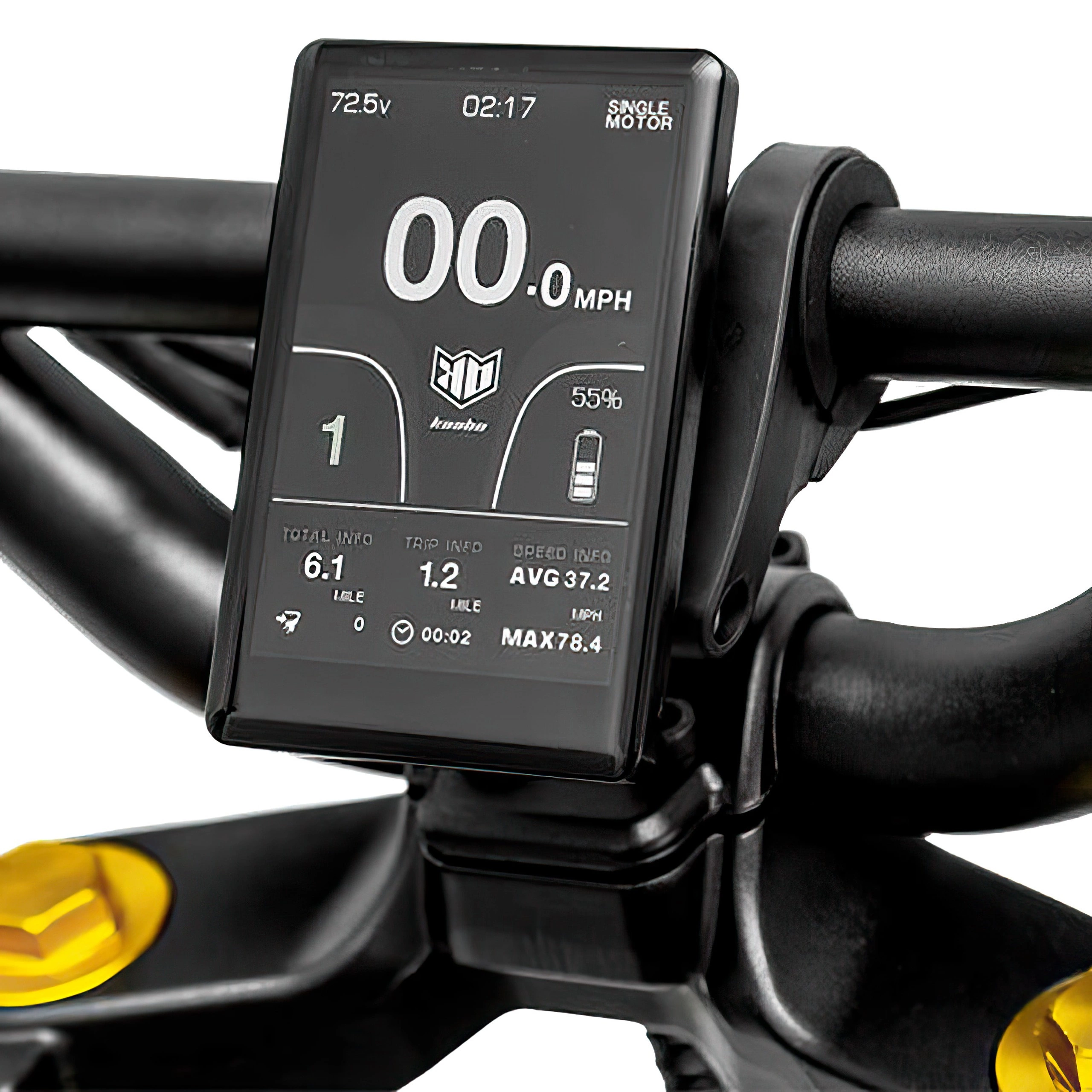 Kaabo Wolf King GT Pro tarjoaa jännittävän huippunopeuden, joka on jopa 100 km/h, tehokkaiden 2000 W:n kaksoismoottoreidensa ansiosta. Tehokkaan 72V 35Ah akun ansiosta käyttäjät voi saavuttaa jopa 55mi (89km) toimintasäteen yhdellä latauksella, mikä takaa, että voi matkustaa kauemmas luottavaisin mielin.