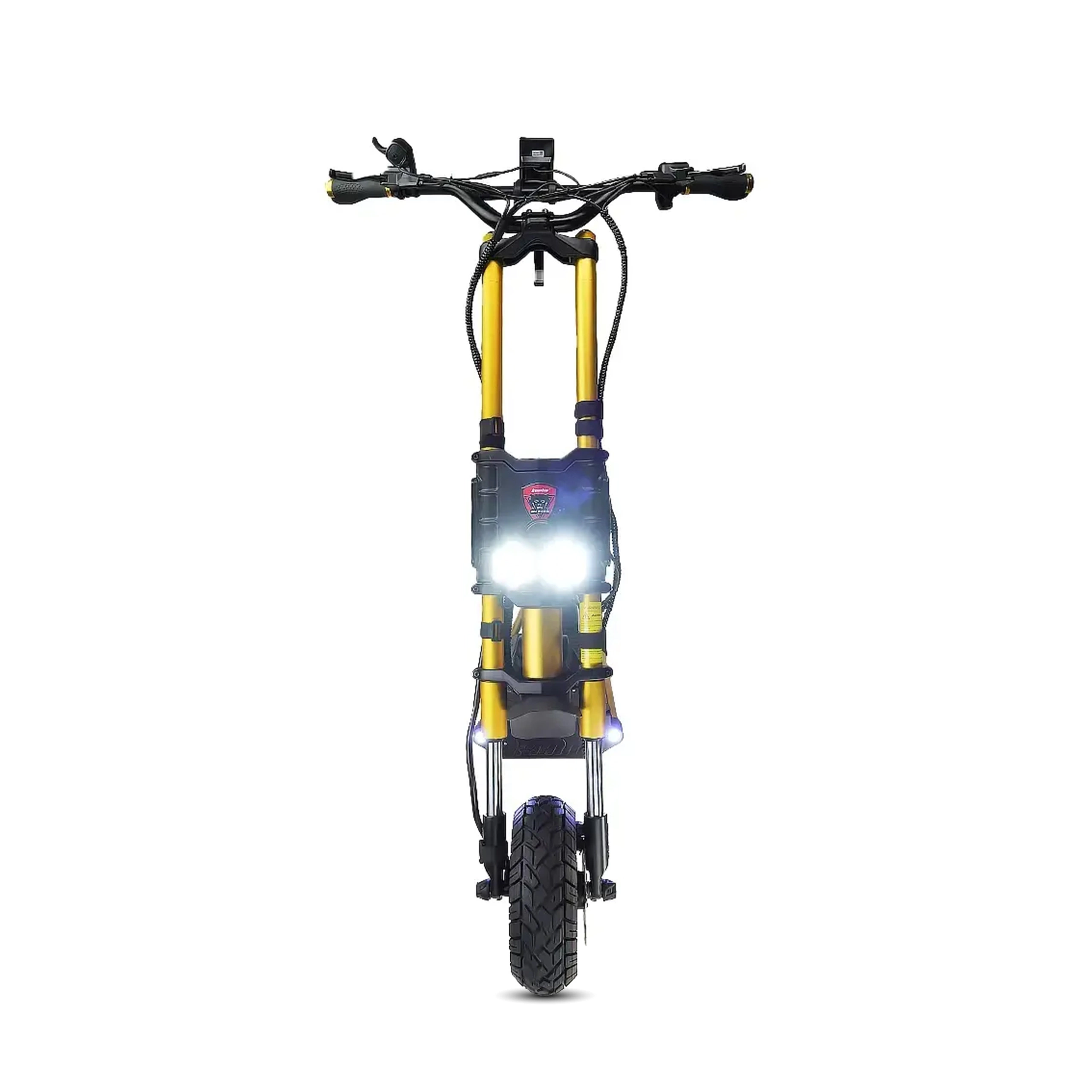 Kaabo Wolf King GTR parantaa kuljettaja -kokemusta käytännön ominaisuuksilla, jotka on suunnattu mukavuuteen ja kestävyyteen. Sen irrotettava akkujärjestelmä helpottaa lataamista ja mahdollista toimintasäteen laajentamista, ja sähköinen skootteri'n IPX5-vedenkestävyys takaa luotettavuuden erilaisissa sääolosuhteissa. Irrotettavat vanteet mahdollistavat yksinkertaisen renkaiden huollon tai vaihdon, mikä vastaa erilaisiin ajotarpeisiin. Lisäksi säädettävä jousitus - jossa on edessä kaksivartinen moottoripyörän iskunvaimennin ja takana 18-tasoinen jousenvaimennusjärjestelmä - antaa käyttäjät hienosäätää kyytiä optimaalisen mukavuuden ja hallinnan saavuttamiseksi. Nämä ominaisuudet ovat osoitus Kaabon omistautumisesta suorituskyvyn ja kuljettaja-keskeisen suunnittelun yhdistämiseen.