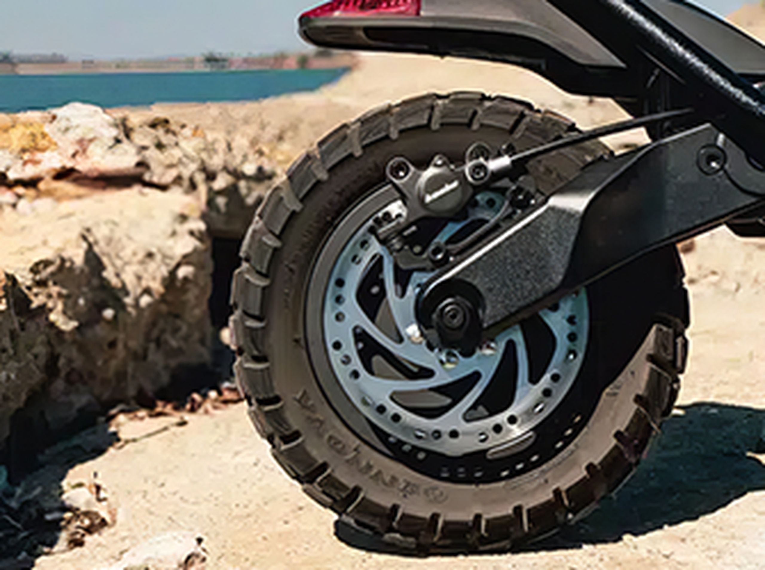 10" ilmatäytteisillä hybridirenkailla ja vankoilla kaksoismoottoreilla varustettu Kaabo Wolf Warrior X GT on valmis kaikkiin haasteisiin. Renkaat ja tehokkaat moottorit takaavat luotettavan ajon.