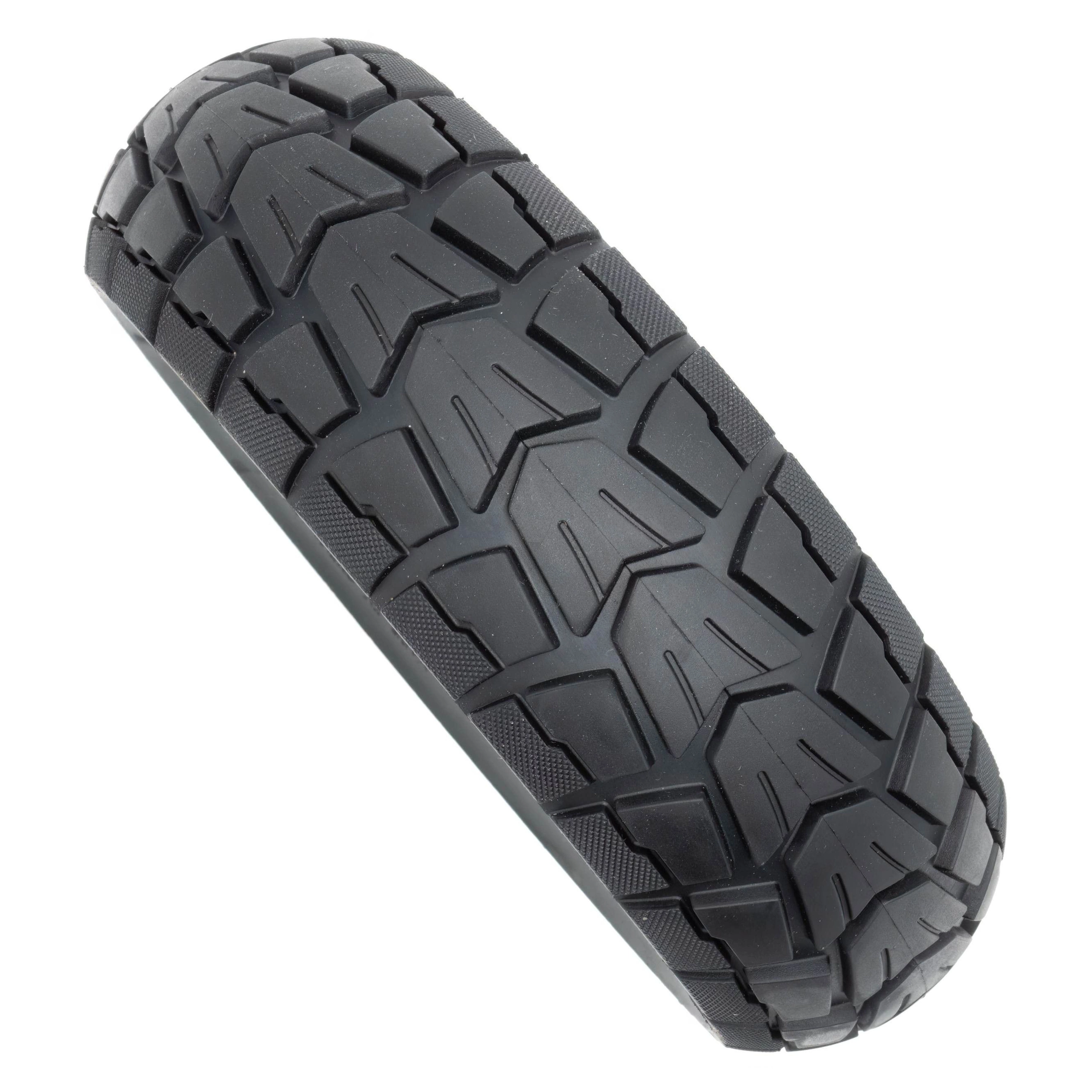 Löydä pehmeä ajo Hitway H5:n päivitetyllä kiinteällä renkaalla, koko 10 x 2,75. Kestävyyden vuoksi valmistetut renkaat eivät pelkää lasia tai nauloja. Ne eivät menetä ilmaa, jos ne lävistetään. Kun vieras esine juuttuu kumin sisään, voit jatkaa matkaa viivyttelemättä. Vältä sisärenkaiden vaihtaminen matkoillasi ja nauti huolettomasta ajosta.