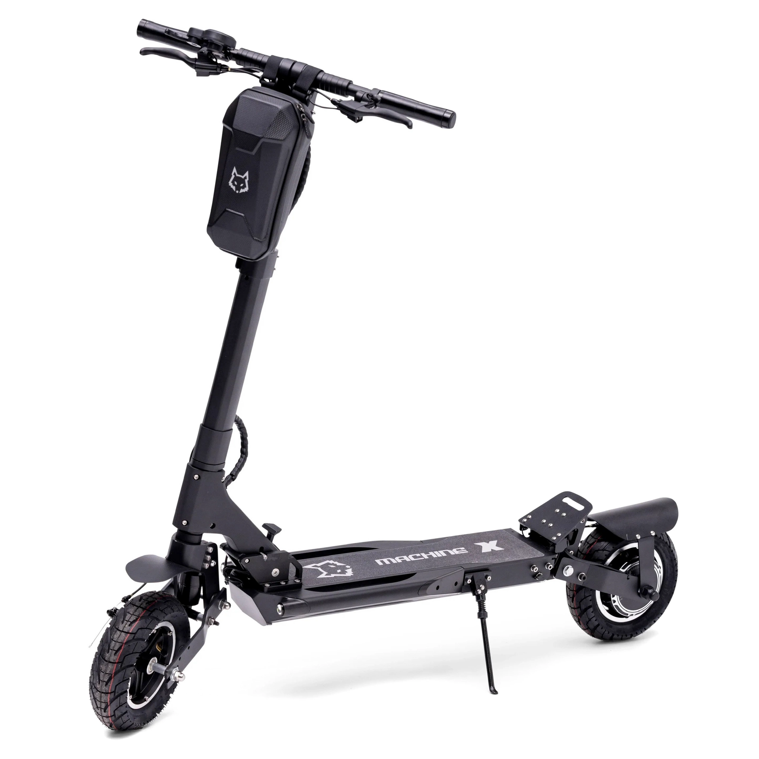 tutustu Machine X Transporter sähköiseen sähköinen skootteri'n 1800W huipputehon moottoriin, joka kantaa vaivattomasti jopa 150 kg (330 lbs). Se takaa tasaisen ajon etu- ja takajousituksen avulla ja täyttää samalla autojen turvallisuusstandardit kaksoislevyjarrujen avulla.