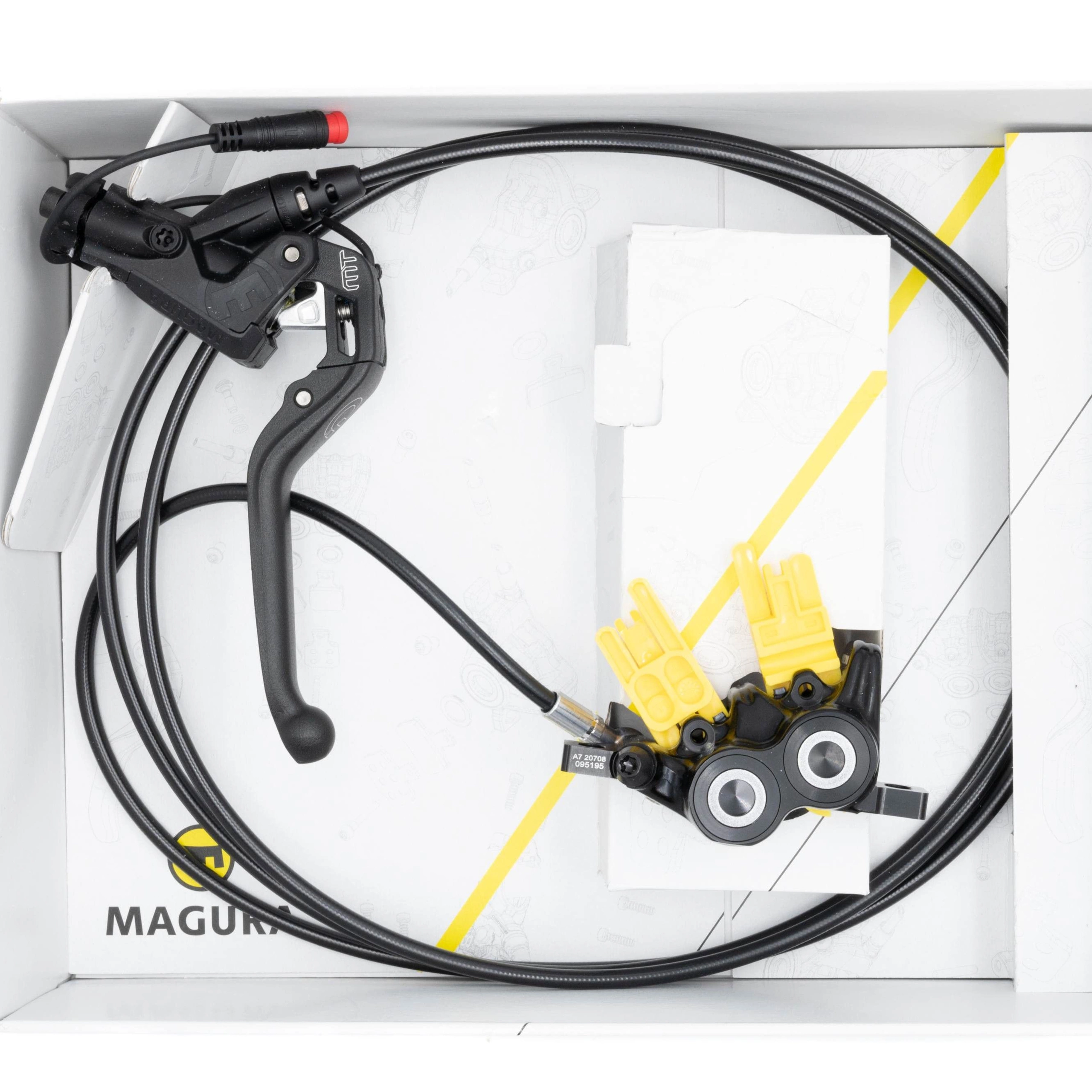 Nämä jarrut eivät vain pysäytä pyöriäsi, vaan ne pysäyttävät myös moottorin (katkaisumekanismin avulla). Magura MT5E:ssä on kyse älykkäästä jarrutuksesta. Jarruvivun sisällä oleva mekaaninen kytkin aktivoi jarruvalon jo ennen varsinaista jarrutusta, mikä takaa välittömän näkyvyyden.