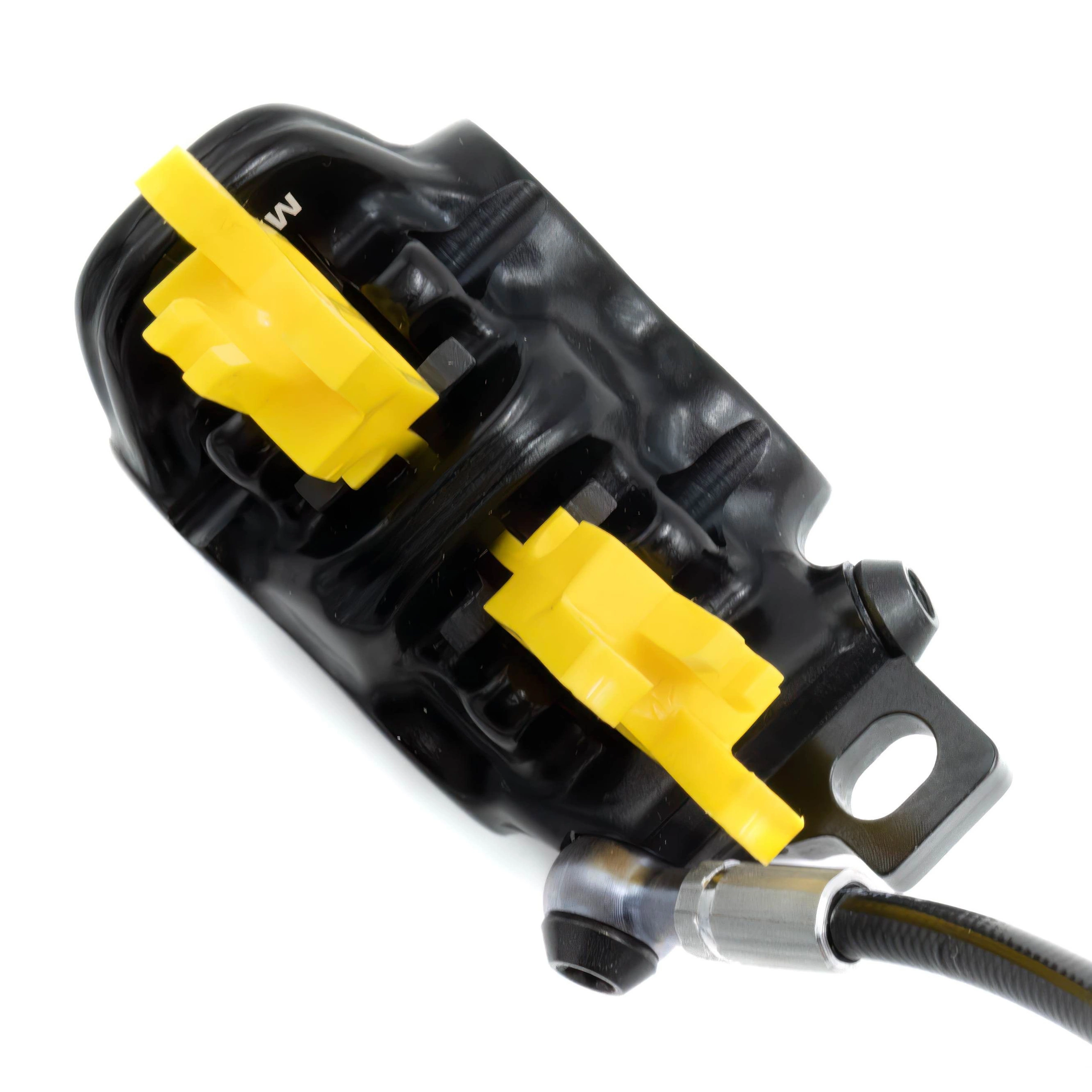 Säädettävä letku ja mahdollisuus vaihtaa jarrupalat irrottamatta pyörää lisäävät käyttömukavuutta. Tiiviit tiivisteet takaavat optimaalisen toiminnan myös haastavissa olosuhteissa, kuten mudassa tai pakkasessa.