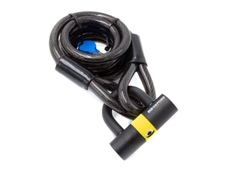 Panssaroitu kaapeli on 2 metriä pitkä ja halkaisijaltaan 15 mm, joten sen pituus ja lujuus riittävät sähköpyörän tai sähköinen skootteri kiinnittämiseen erilaisiin kiinteisiin kohteisiin, kuten pyörätelineisiin, valaisinpylväisiin tai kaiteisiin. Pituuden joustavuus mahdollistaa helpon ja monipuolisen lukituksen erilaisissa ympäristöissä.