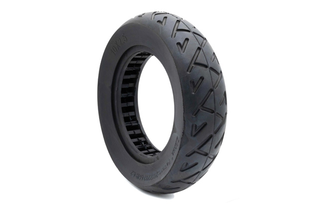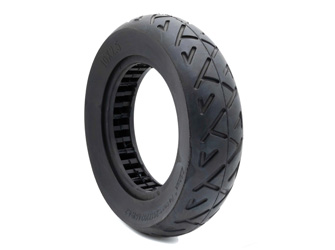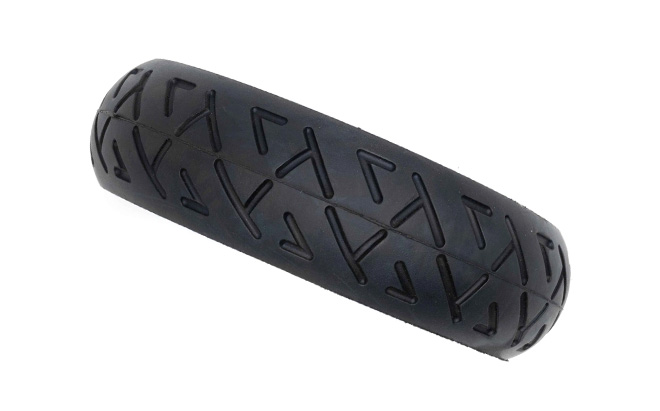 Tämä muotoilu jäljittelee tarkasti perinteisten ilmatäytteisten renkaiden iskunvaimennusvaikutusta. Ajamisesta tulee miellyttävämpää vähemmän ihanteellisilla pinnoilla. Renkaat minimoivat sähköinen skootteri:n sähkökomponentteihin - moottoriin, ohjaimeen ja akkuun - kohdistuvan rasituksen.
