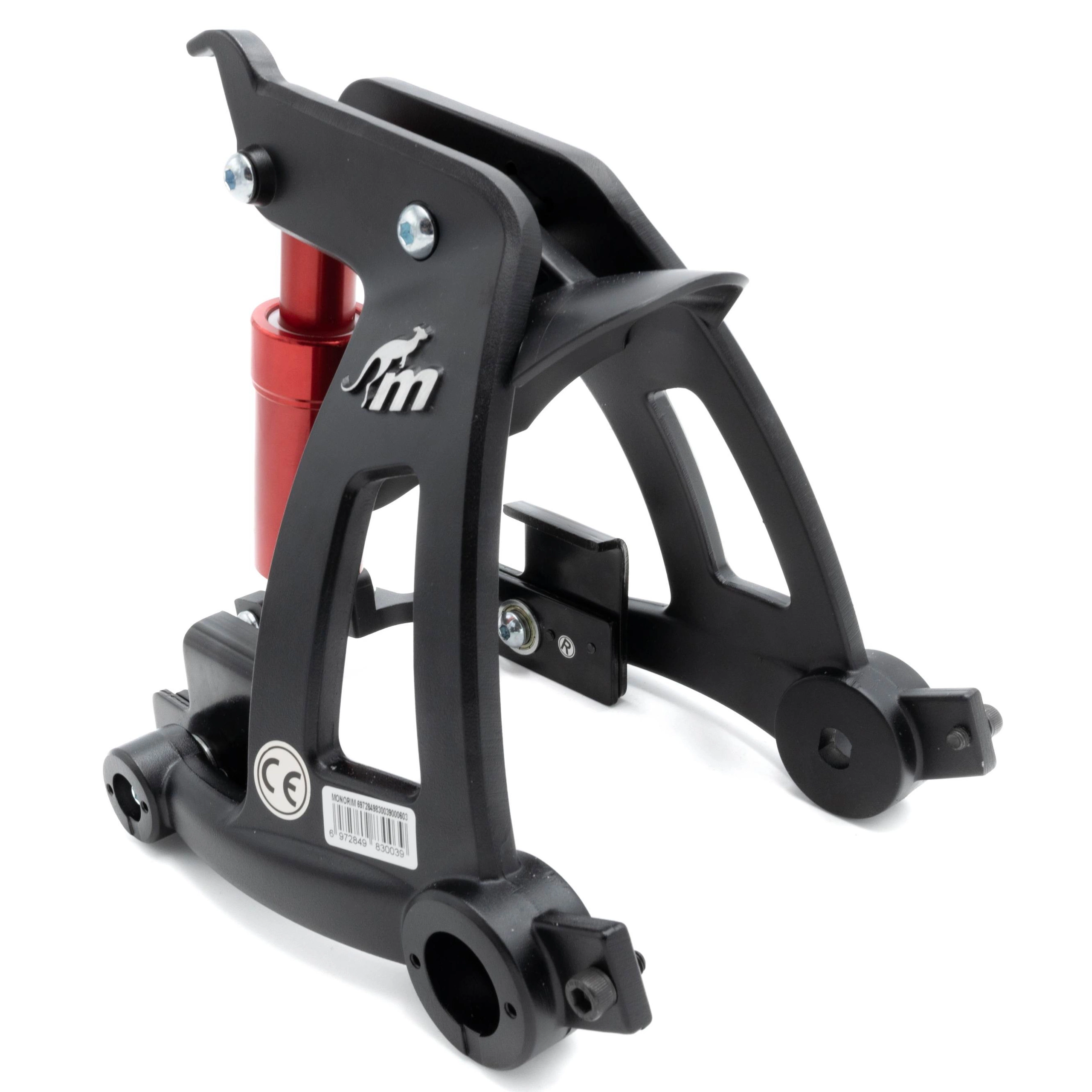 Korkealuokkaisesta alumiinista ja teräksestä valmistettu takajousitus takaa tiukan istuvuuden. Se vie mukavuuden seuraavalle tasolle. Epätasaisilta pinnoilta tulevan tehokkaan vaimennuksen ansiosta kuljettaja tuntee vähemmän tärähdyksiä ja tärinää. Tämä tarkoittaa miellyttävämpiä ajoja ilman tavallista väsymystä.
