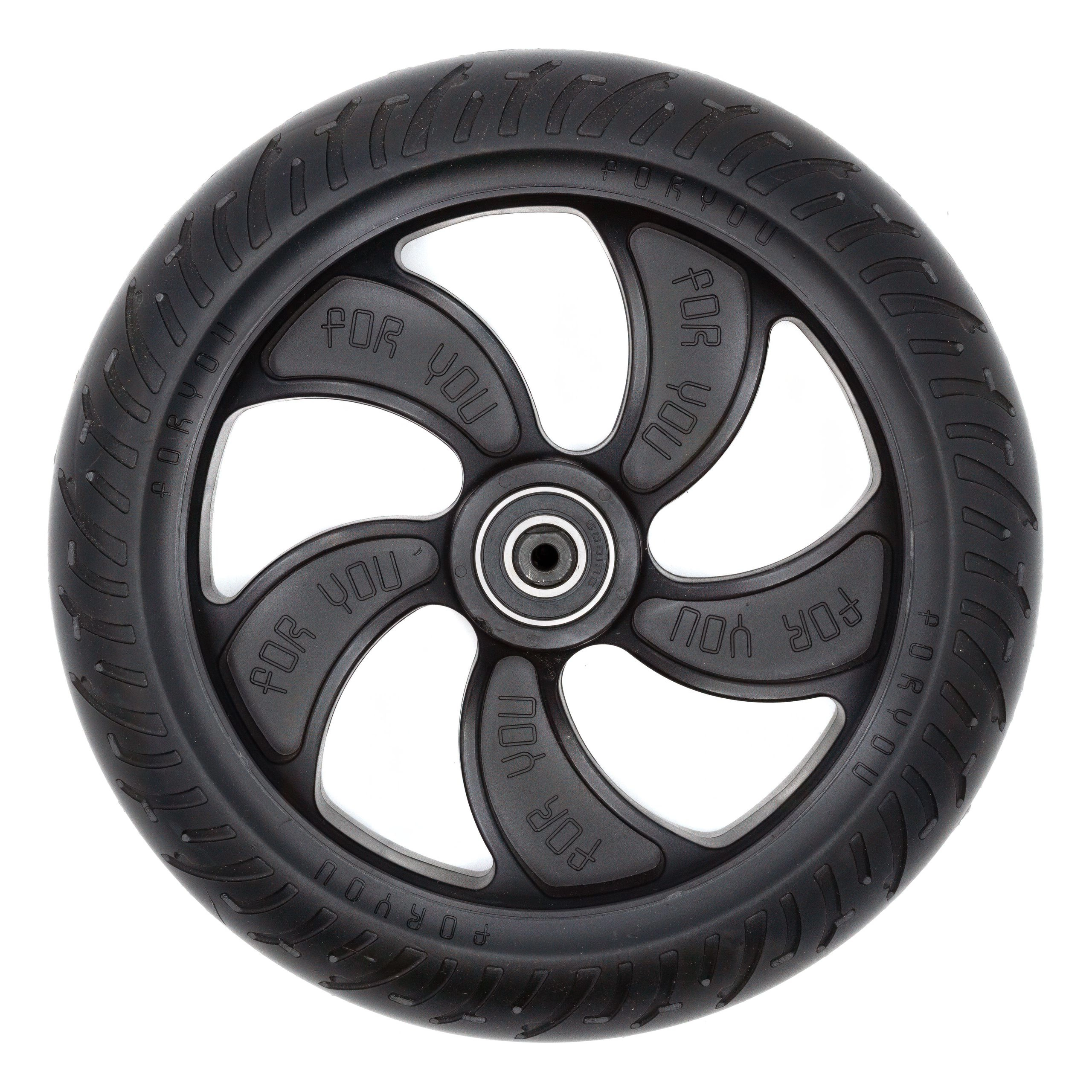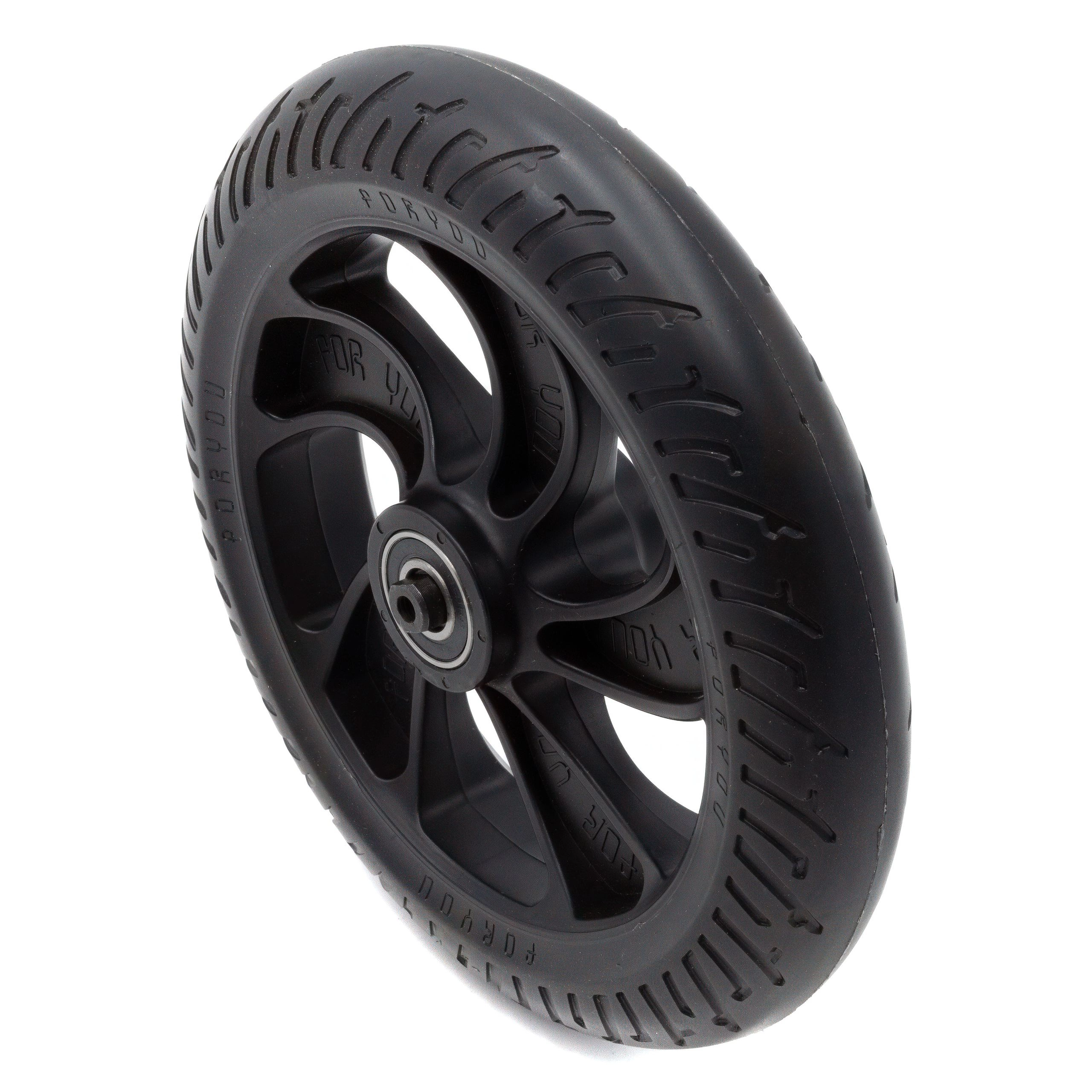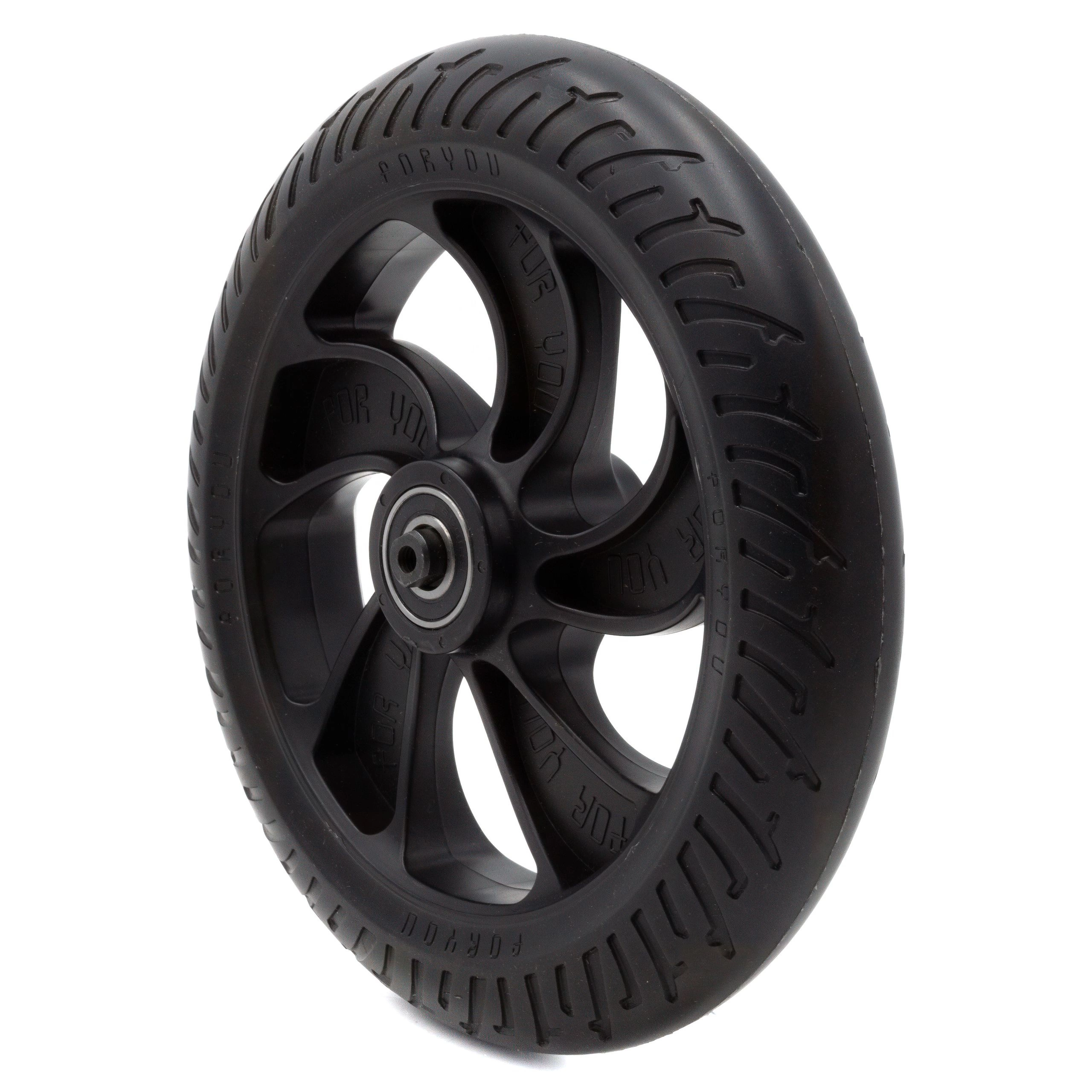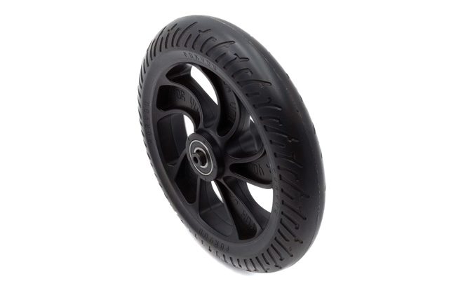 Tämä takapyöräkokoonpano on suunniteltu optimoimaan sähköinen skootteri'n suorituskyky. Pyörän rakenne ja materiaalit on valittu siten, että joustavuus ja jäykkyys ovat tasapainossa, mikä edistää tasaisempaa ja vakaampaa ajoa. Se vaimentaa iskuja ja tärinää tehokkaasti ja parantaa ajomukavuutta erityisesti epätasaisessa maastossa.