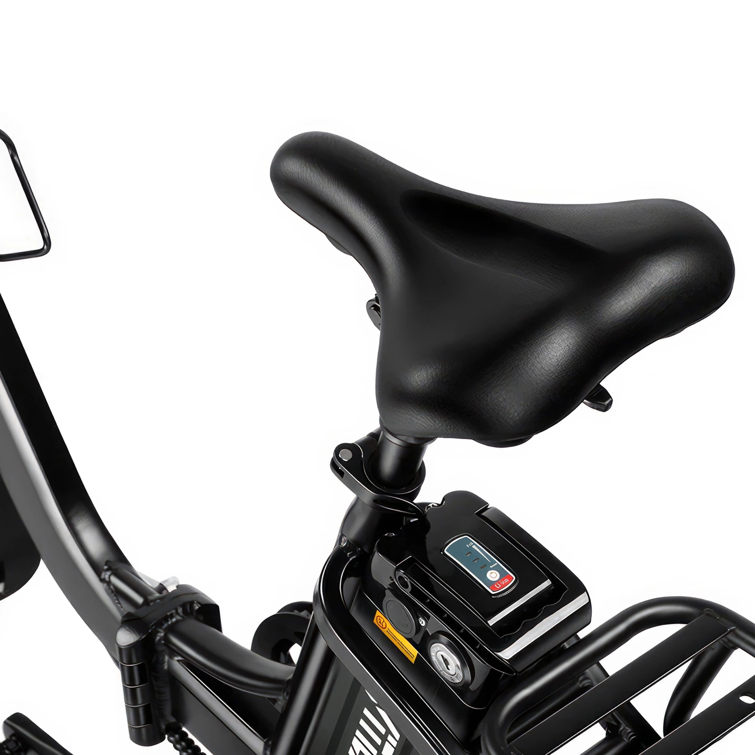 Vitilan U7 2.0:ssa on kaksoisjousitusjärjestelmä, jossa on etuhaarukkajousitus ja mukava, säädettävä istuin yhdistettynä iskunvaimentimiin. Tämä kokoonpano takaa tasaisen ajon. Se vaimentaa epätasaisen maaston kuoppia ja iskuja ja tarjoaa sinulle vakaan ja mukavan matkan.